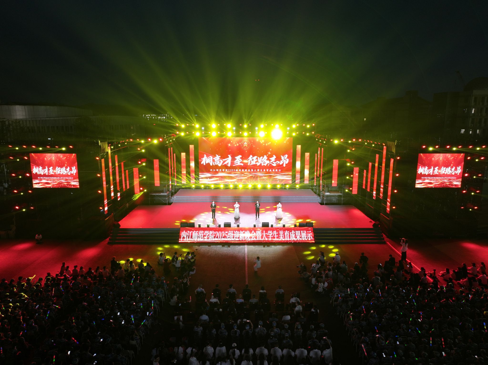 “桐高才至,征路志昂”。9月27日晚,学校2025级迎新晚会暨大学生美育成果展示在田径场精彩上演。校党委书记黄永忠与校党委副书记、校长郭云东等校领导,各职能部门与二级学院负责人、教师代表及全体新生共同观看了演出。