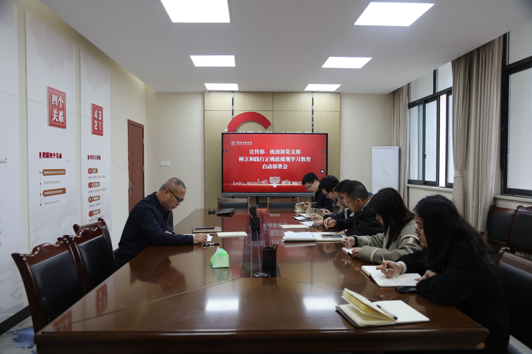 3月13日,机关宣传部、统战部党支部召开了树立和践行正确政绩观学习教育启动部署会,党支部全体党员参加会议。